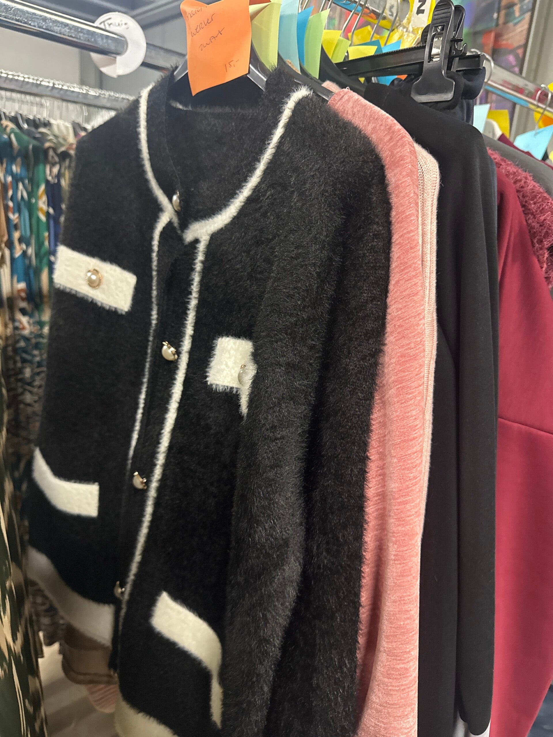1x vestje zwart wit 15,-