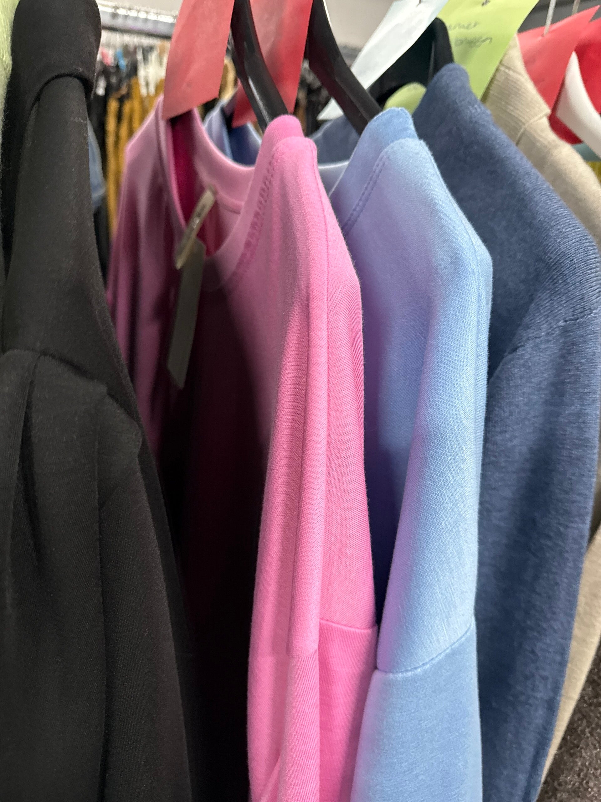 2x sweater lang roze en blauw 24,-