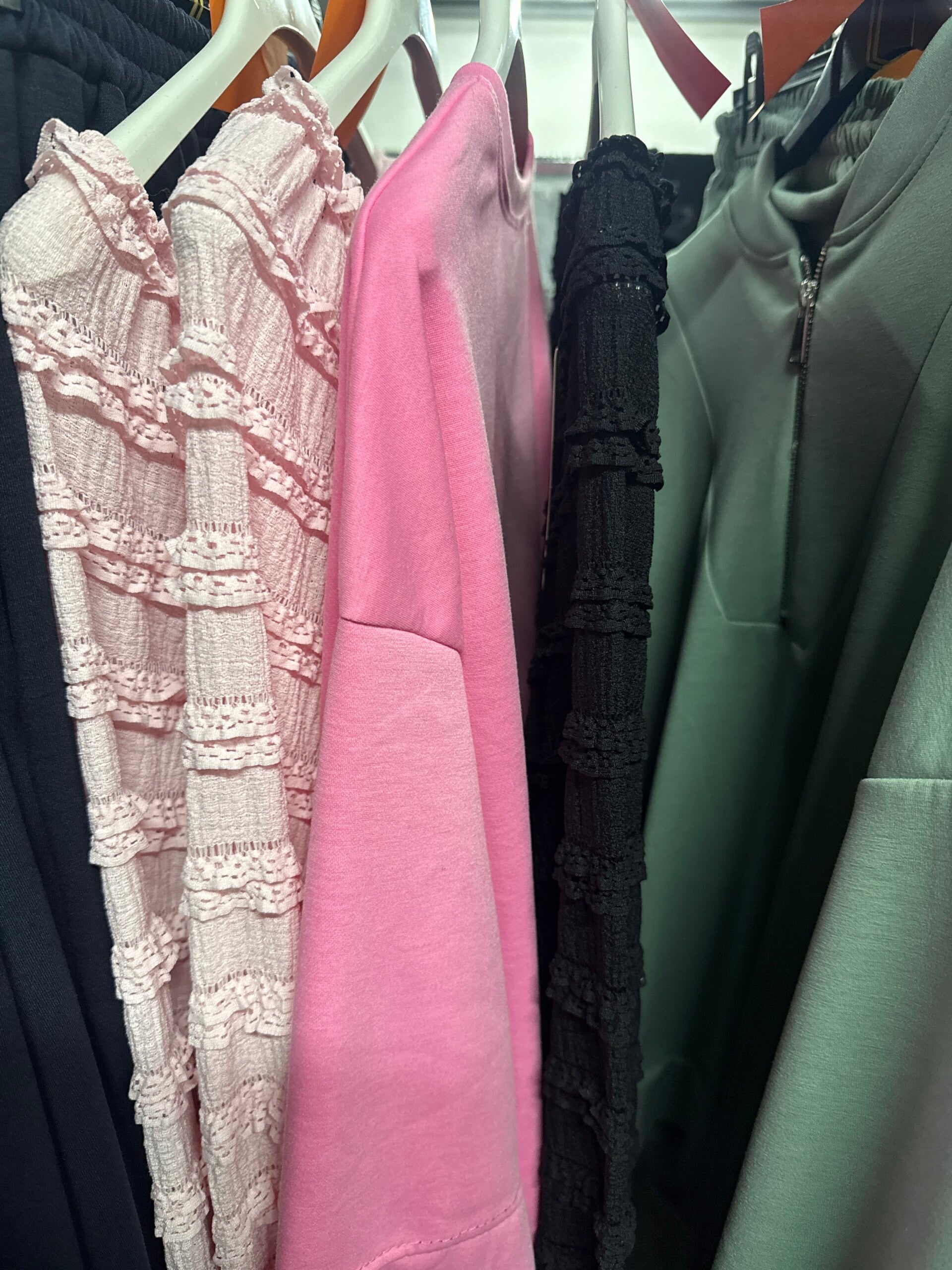 1x blouse kant roze 15,-