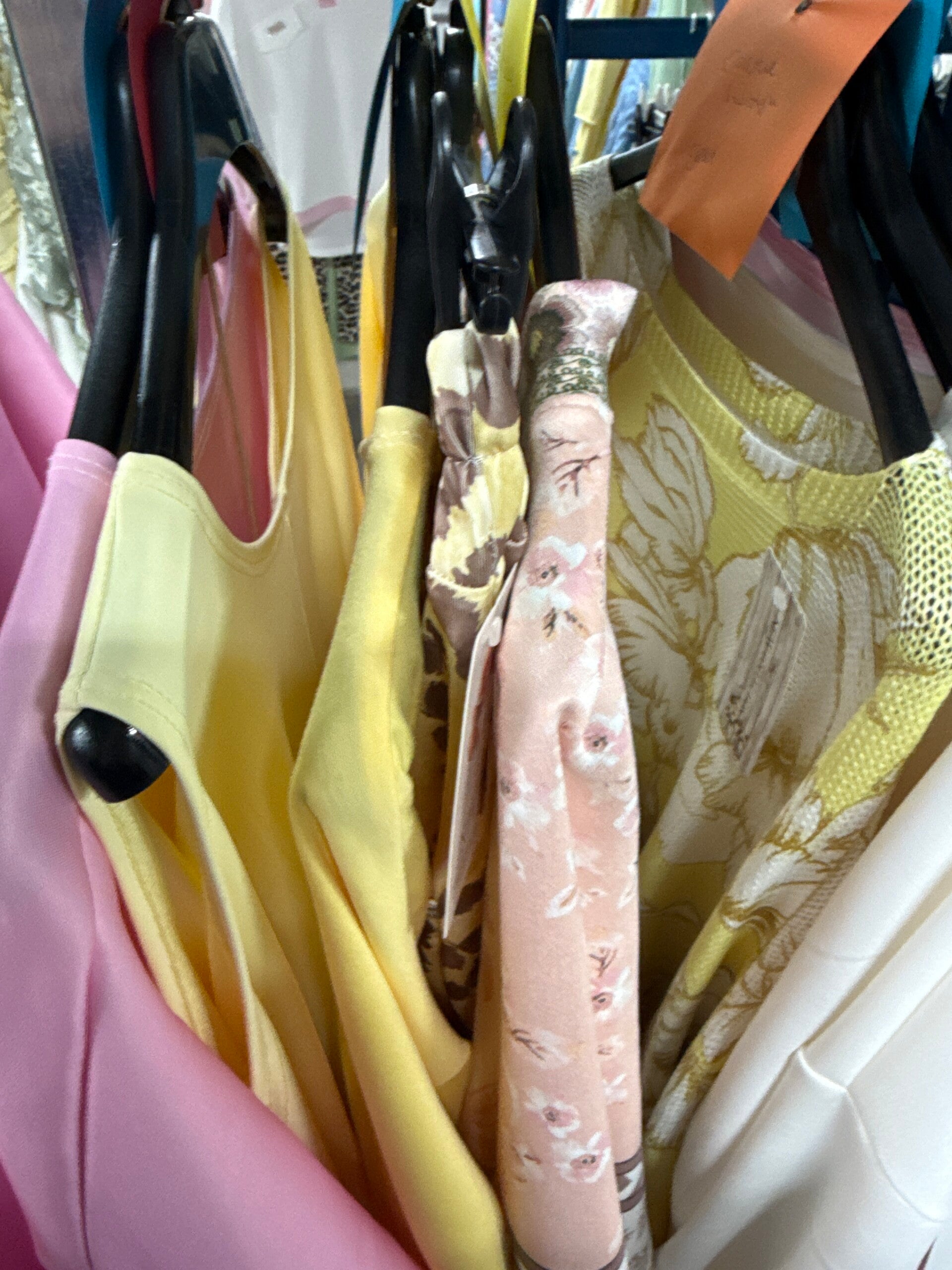1x print broek geel 16,-