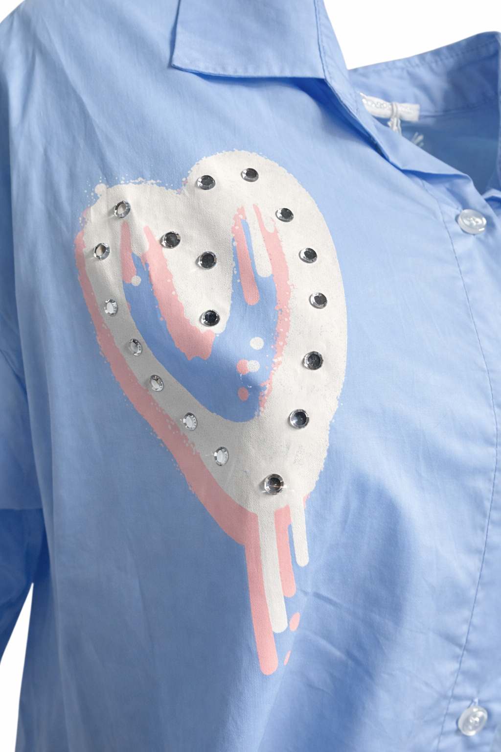 - Trendy blouse met speelse hart-details en steentjes