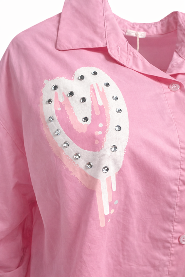- Trendy blouse met speelse hart-details en steentjes