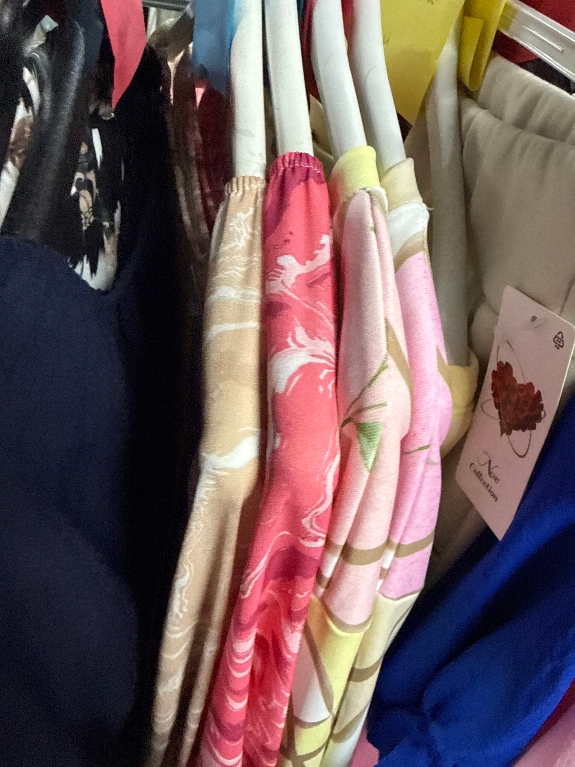 2x print blouse beige en koraal 26,-