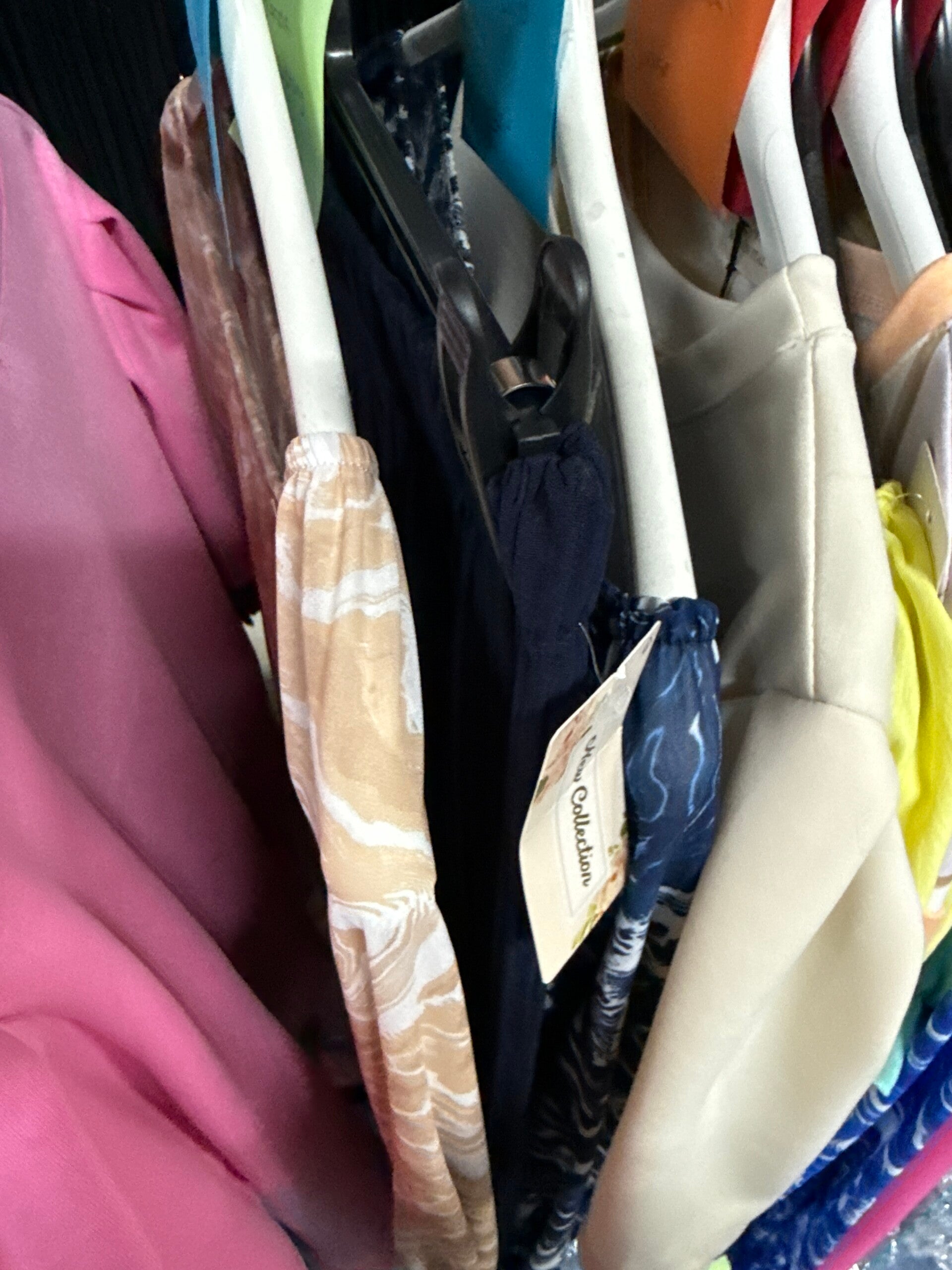 2x print blouse beige en dblauw 26,-