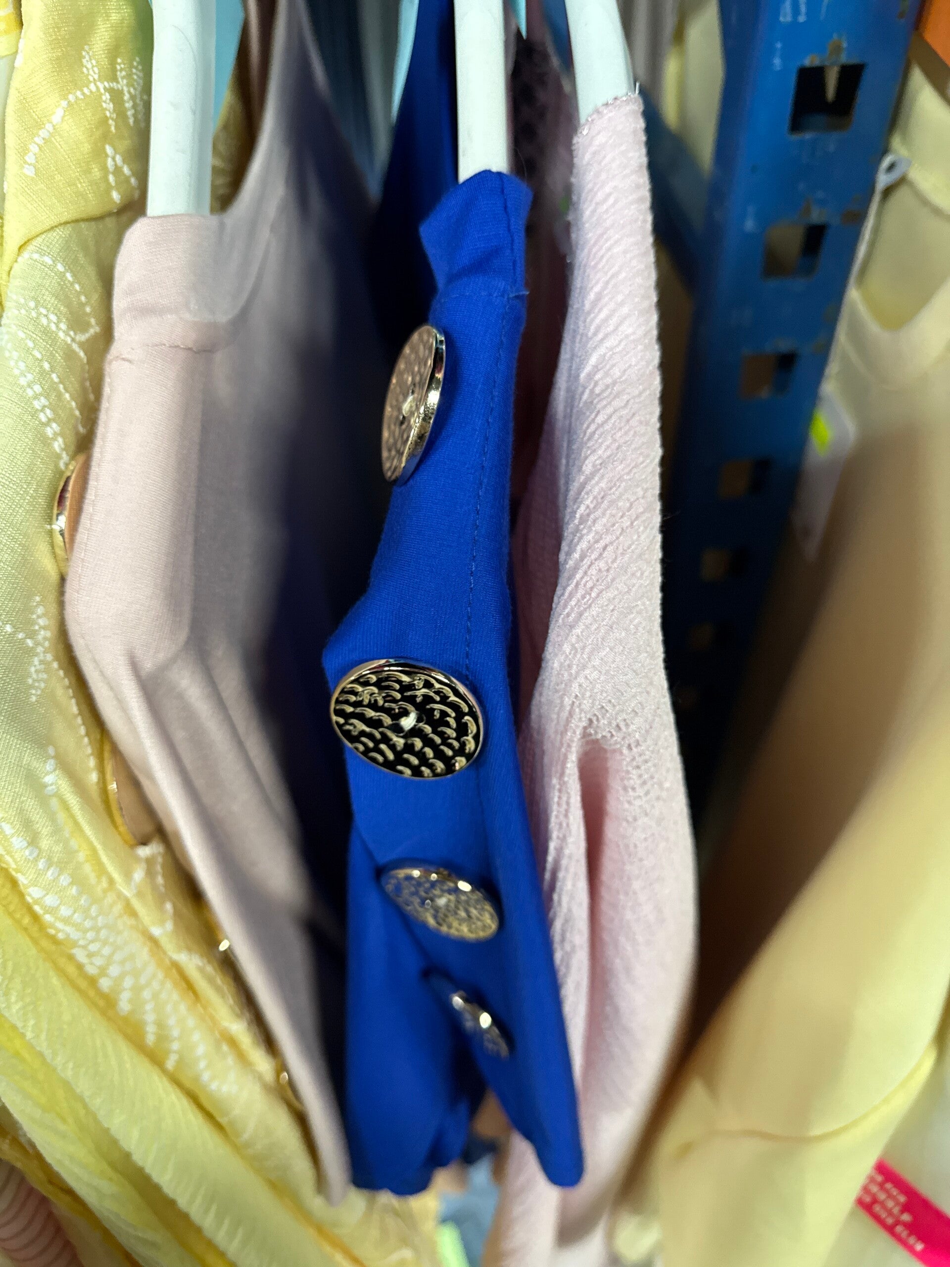 1x shirt knopen kobalt 14,-