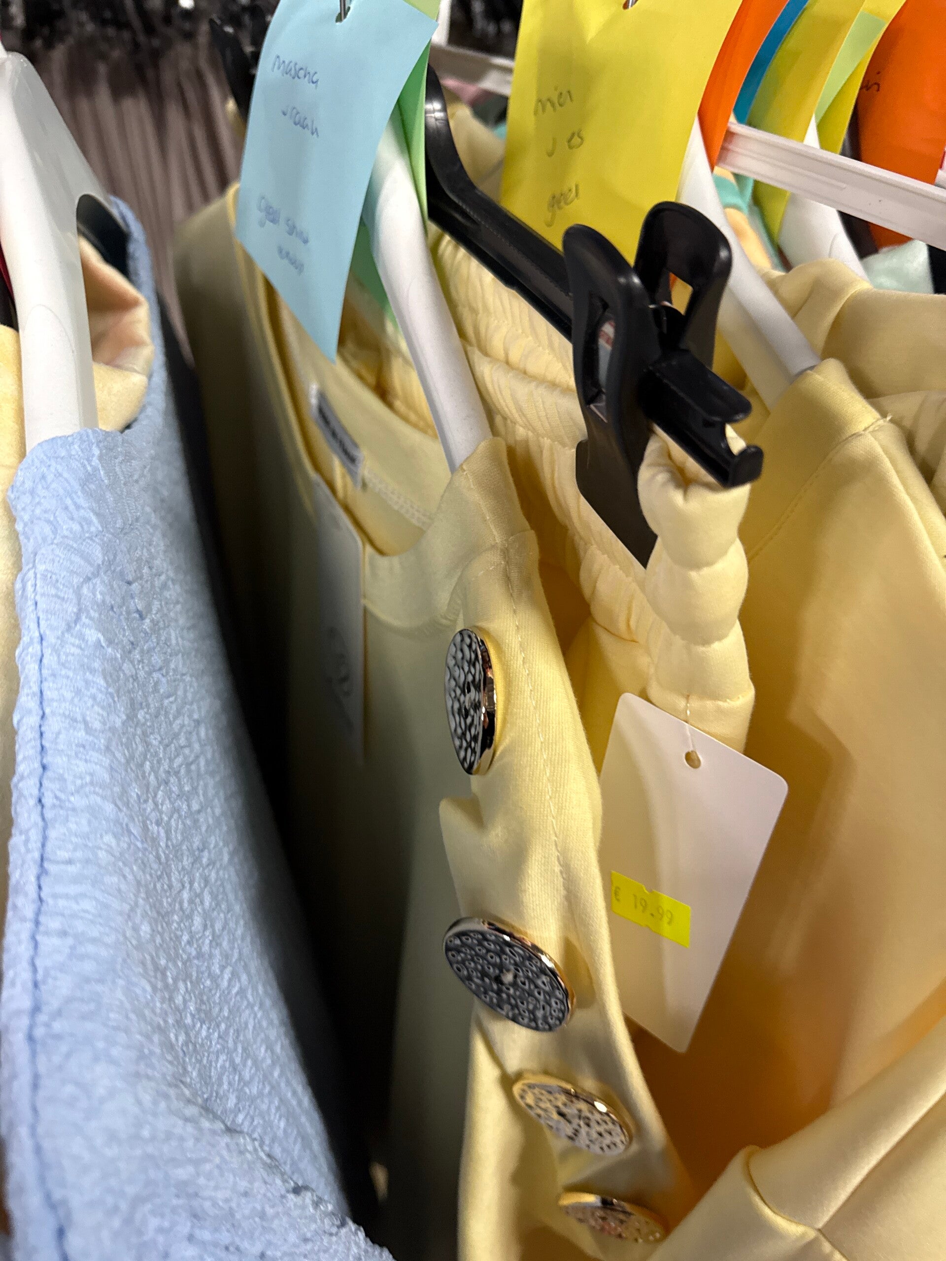 1x shirt knopen geel 14,-