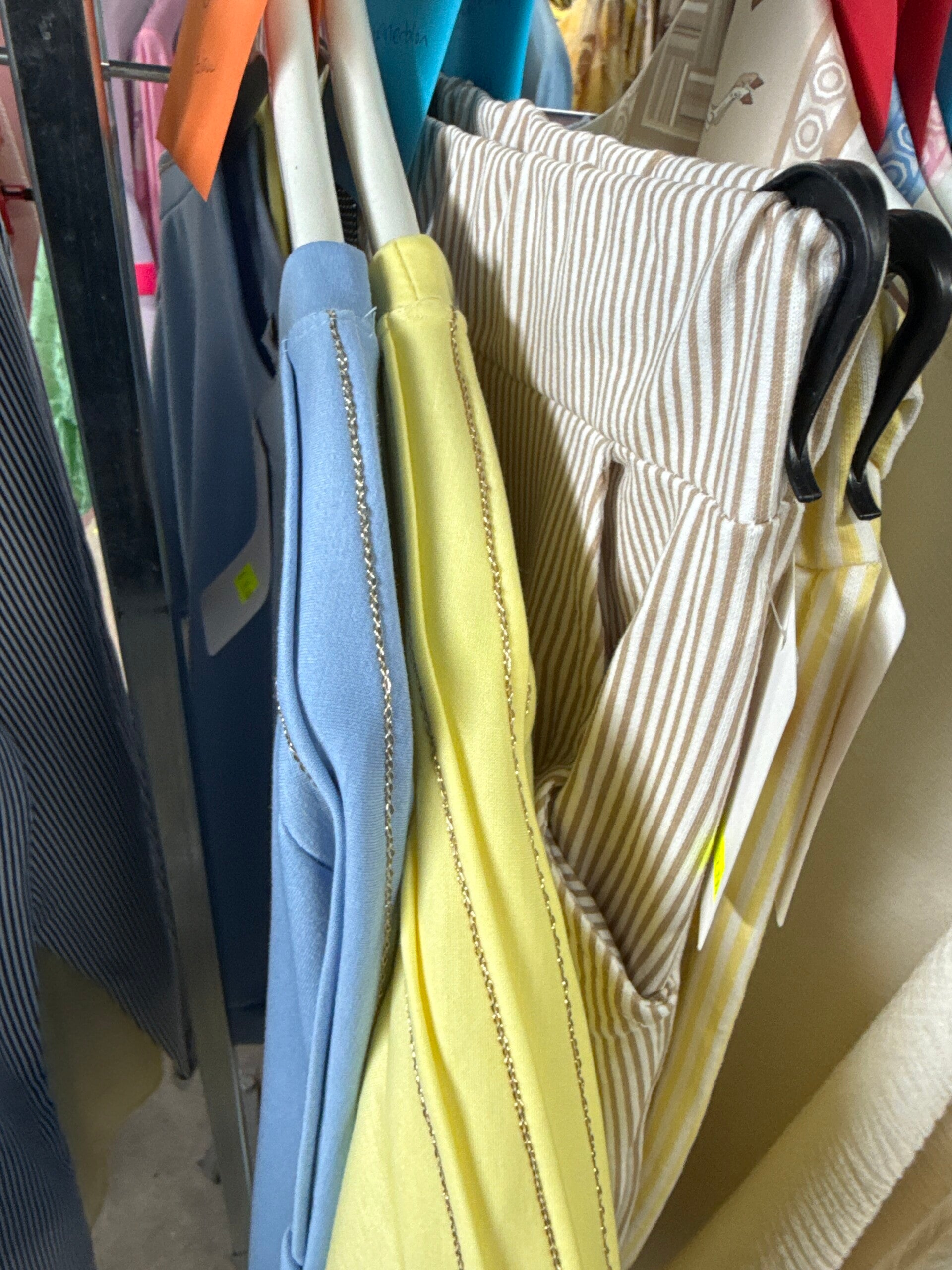 2x maat 2 streep beige en geel 25,-