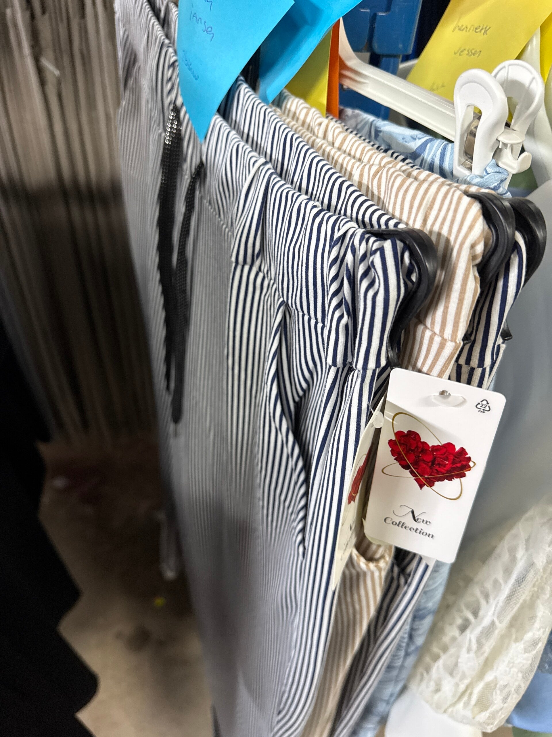 2x maat 2 streep broek blauw en beige 25,-