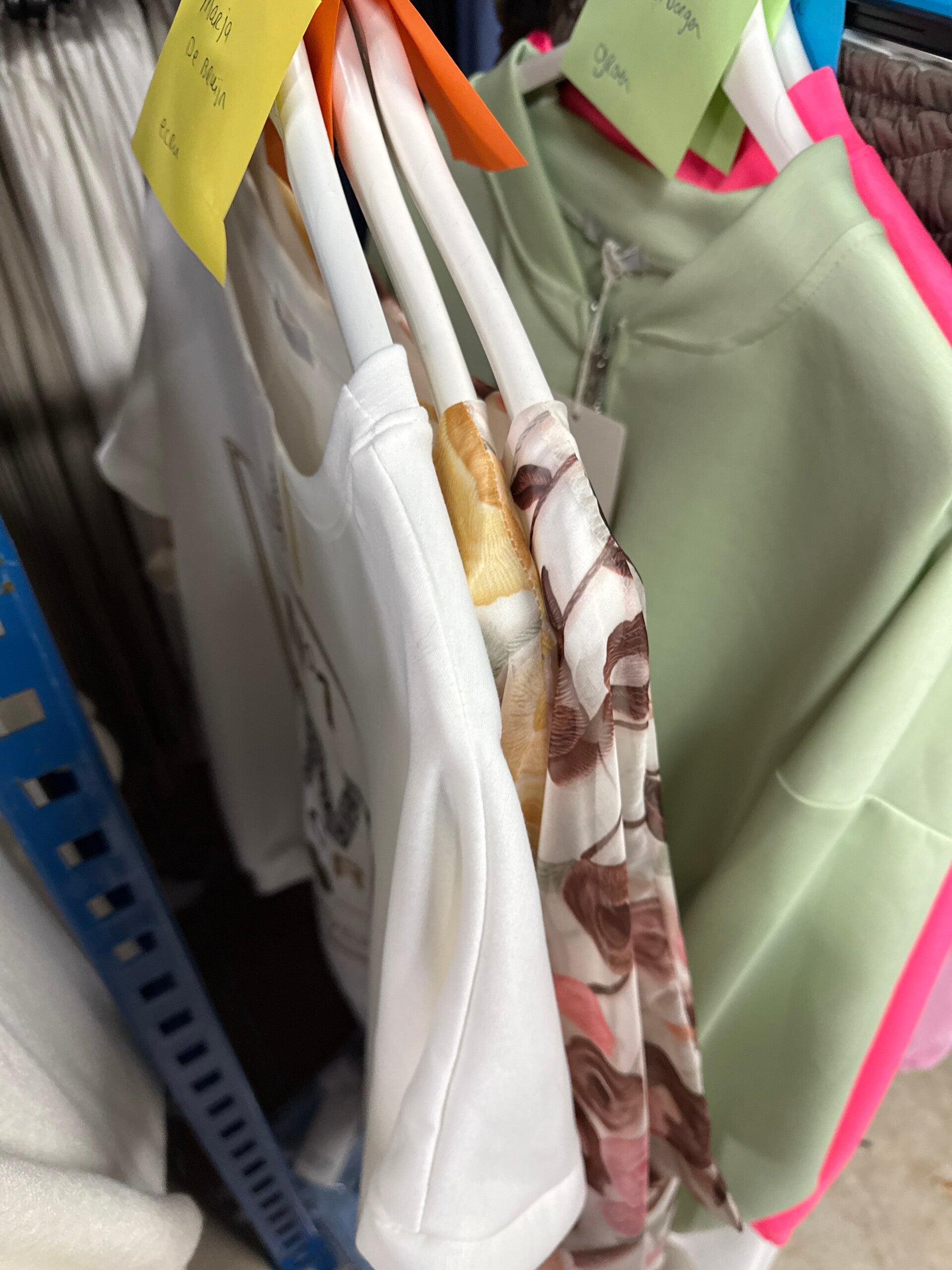2x blouse print geel en beige 30,-